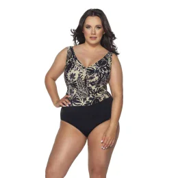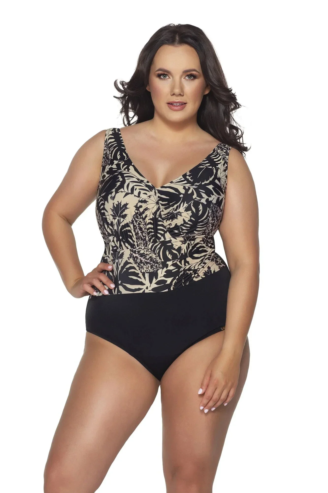 Dámské jednodílné plavky 51 AVA - elastická látka z barevného mikrovlákna - horní část vzorovaná - zadní část jednobarevná - bez kostic - široká ramínka - opticky zeštíhlí postavu