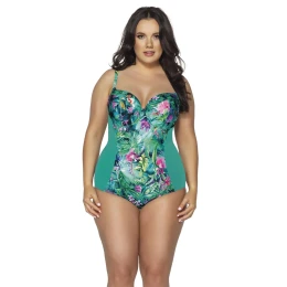 Dámské jednodílné plavky 52 Paradise plus AVA - zelená barva - pestrobarevný potisk - vyztužené košíčky - s kosticemi - nastavitelná ramínka - zapínání v zadní části