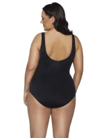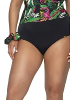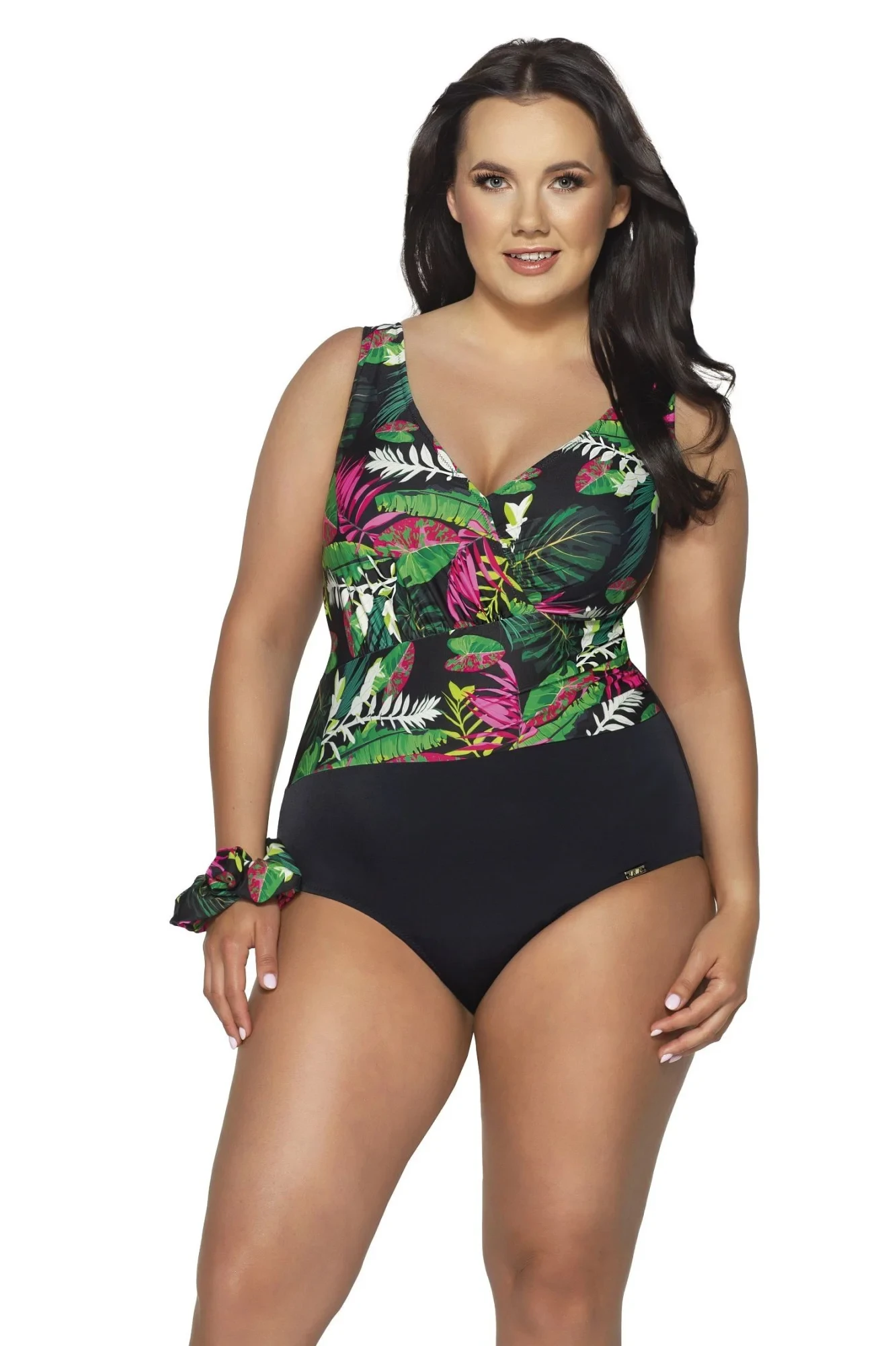 Dámské jednodílné plavky 56 Tropical island AVA - černá barva - pestrobarevný potisk - spodní část díky černé barvě opticky zeštíhluje - košíčky bez kostic - široká ramínka