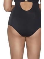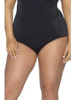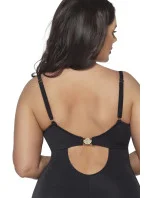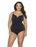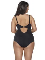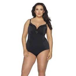 Dámské jednodílné plavky 58 black AVA - černá barva - z hladkého mikrovlákna - košíčky full cup - s kosticemi - neodepínatelná ramínka - ozdobné lesklé pásky - zapínání vzadu na kovovou sponu