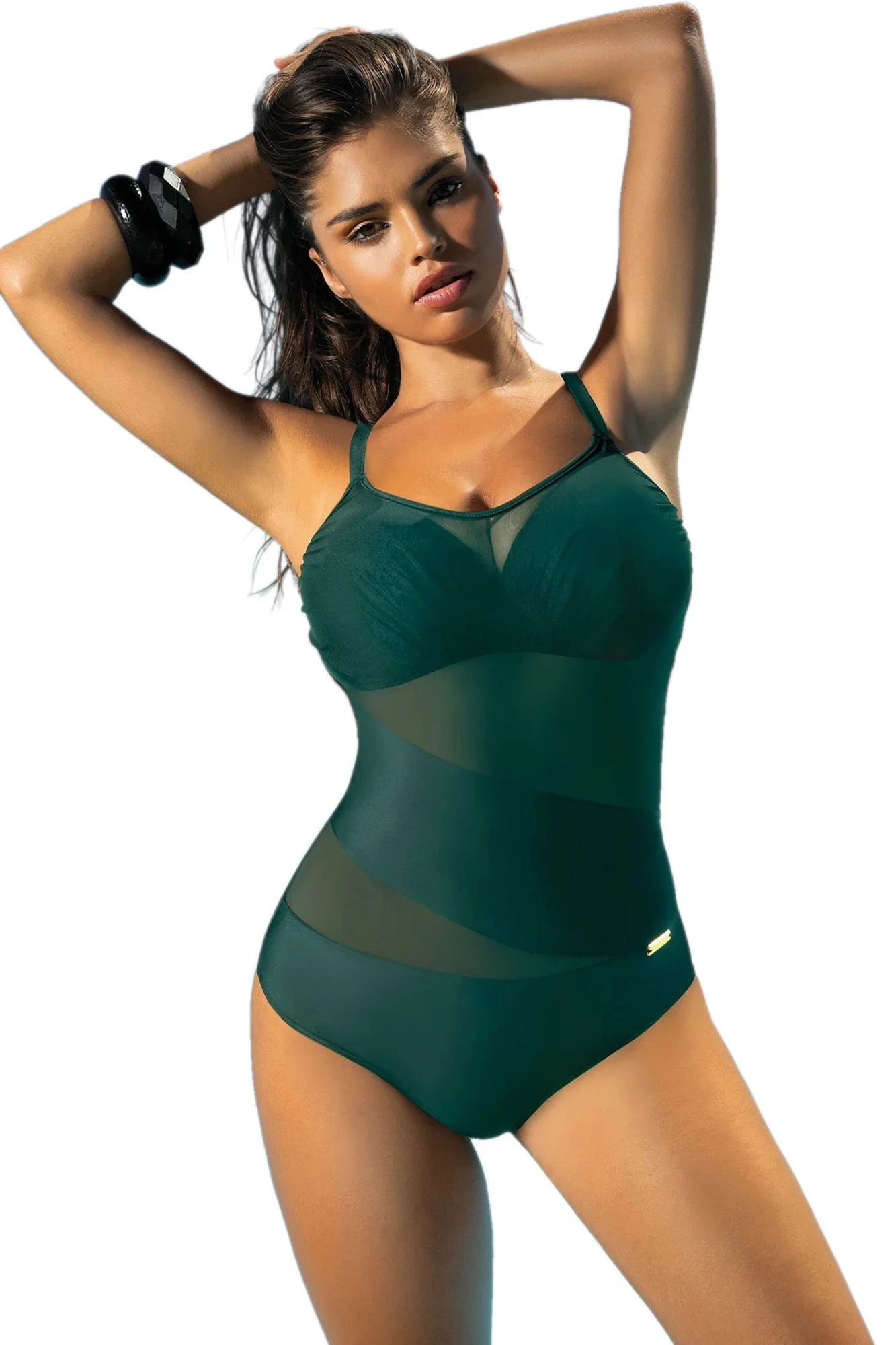 Dámské jednodílné plavky 964S 7 Fashion17 Self - plavky jsou vyrobené z příjemného, pružného a rychleschnoucího materiálu - módní střih - z vysoce kvalitního mikrovlákna a síťoviny - vyztužené košíčky - nastavitelná ramínka, odepínatelná pouze vzadu - kolekce 2023
