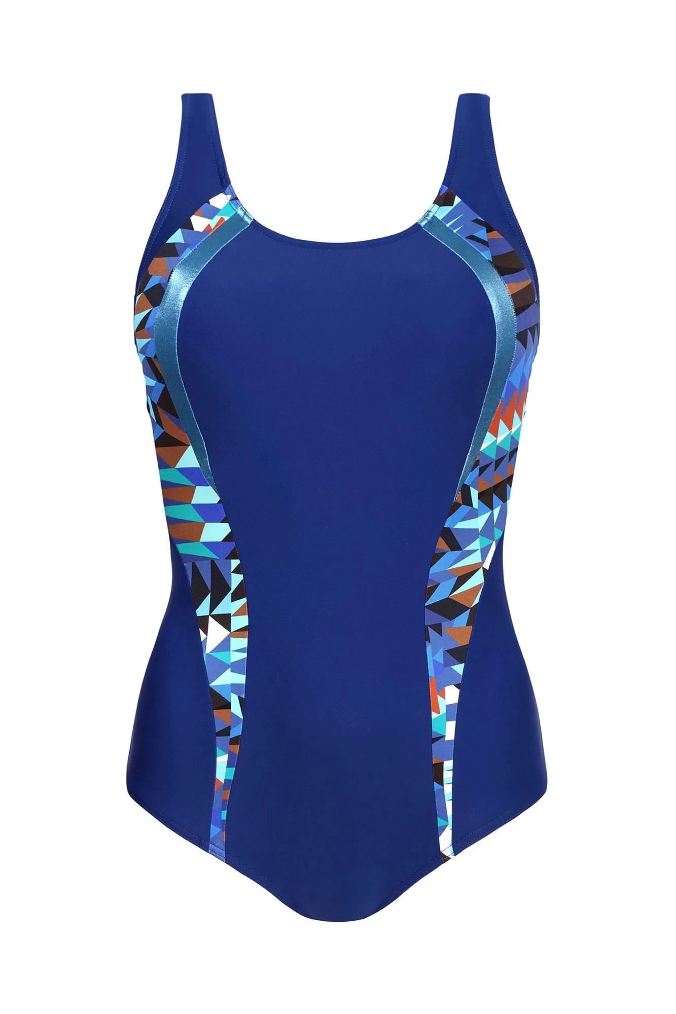 Dámské jednodílné plavky Atlantic sport 34A1 35 SELF - světle modrá barva - z vysoce jakostního materiálu - jemně vyztužené košíčky - barevné vsadky na bocích - širší ramínka s regulací - rychleschnoucí materiál, odolný proti chlóru a slunci