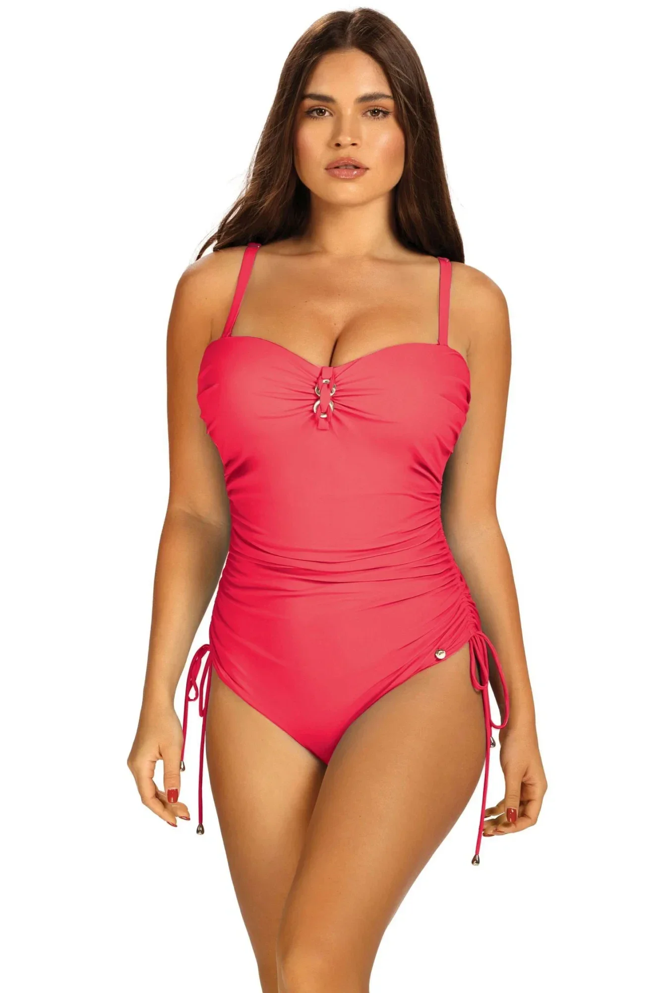 Dámské jednodílné plavky Bayamon 13 8030BM13 2 SELF - růžová barva - polstrované košíčky - mezi košíčky řasení s ozdobou - vázání na bocích - nastavitelná a neodepínatelná ramínka - rychleschnoucí materiál, odolný proti chlóru a slunci