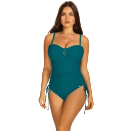 Dámské jednodílné plavky Bayamon 13 8030BM13 7 SELF - tyrkysová barva - polstrované košíčky - mezi košíčky řasení s ozdobou - vázání na bocích - nastavitelná a neodepínatelná ramínka - rychleschnoucí materiál, odolný proti chlóru a slunci