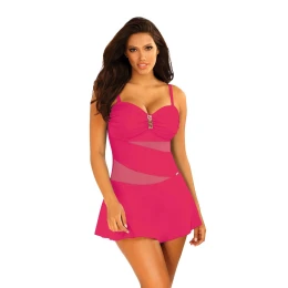 Dámské jednodílné plavky Gold 10 8900CH1 2 SELF - růžová barva - z příjemného, pružného a rychleschnoucího materiálu - vyztužené push-up košíčky - bez kostic - pod linií poprsí všitá guma - mezi košíčky ozdobná spona - nastavitelná a odnímatelná ramínka - kalhotky klasického střihu