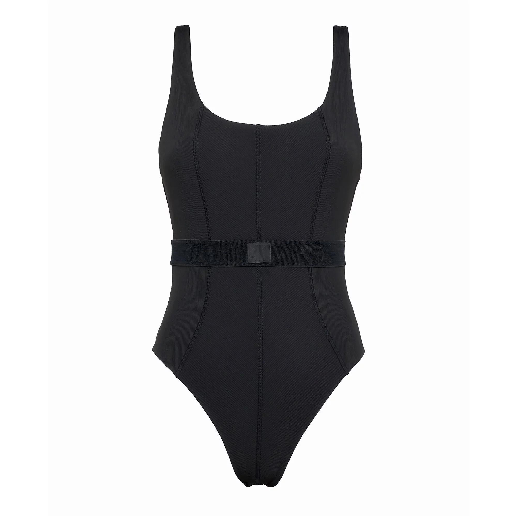 Dámské jednodílné plavky Monogram Rib KW0KW02151-BEH - Calvin Klein