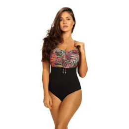 Dámské jednodílné plavky Palermo 8 S684PA8-2 černé s barevným vzorem - Self