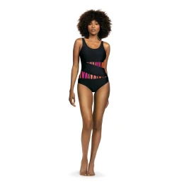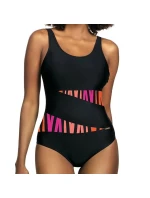 Dámské jednodílné plavky S36 20 Fashion sport S36 SELF - černá barva - sportovní střih - široká a posuvná ramínka - vyztužené košíčky - vsadky ze vzorovaného mikrovlákna