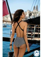 Košíčky jsou na vnitřní straně jemně vyztužené a lehce vytvarované. Pod poprsím je všitá guma, která je zárukou pohodlí a komfortu při nošení v průběhu aktivního dne. Přední díl plavek je podšitý podšívkou. Ramínka se na zádech křižují. Délku ramínek je možné nastavit.