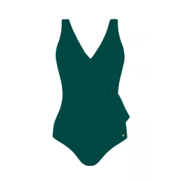 Dámské jednodílné plavky Thailand3 1069F23 7 SELF - zelená barva - polstrované košíčky poskytují pohodlí a oporu - tvarující volánky opticky zeštíhlují postavu - odolné vůči chlóru a UV záření - rychleschnoucí materiál