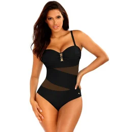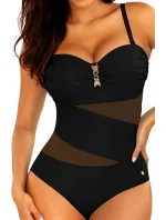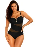 Dámské jednodílné plavky Tiger5 8030TG1 19 SELF - černá barva - vyztužené košíčky bez kostic - mezi košíčky zlatá ozdoba - nastavitelná ramínka - zdobené síťovinou - rychleschnoucí materiál, odolný proti chlóru a slunci