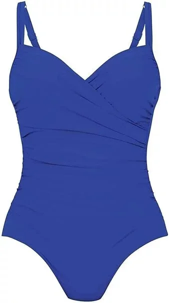 Stahující, zeštíhlující, elagantní plavky s kosticí. Přední díl je ušit ze dvou řasených dílů. Toto šití opticky zmenšuje nadměrné poprsí, řasení vyrovnává nedokonalé tvary a působí elegantně. Přední díl je vypodšívkovaný. Kostice je ergonomická a je zašitá měkkou, hebkou, prsní podšívkou. Plavky jsou jednoduché a krásné. Dobře tvarují postavu.