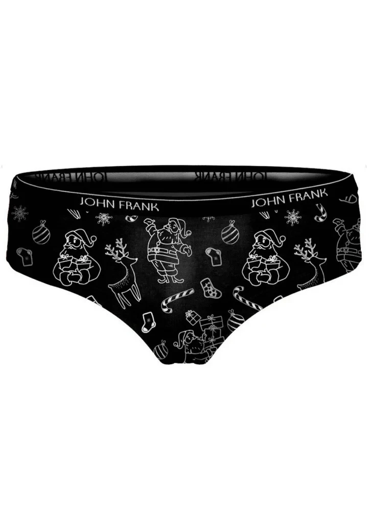 Dámské kalhotky střihu hipster od značky John Frank z limitované vánoční kolekce. Bavlněné kalhotky s módně zpracovaným potiskem jsou velmi příjemné na dotek a pohodlné při nošení. Jemná, středně široká guma v pase má kolem logo John Frank. Do vnitřního dílu je zapracován bavlněný klínek pro komfortní nošení. Slaďte se v kolekci ON & ONA, dámské kalhotky i pánské boxerky naleznete u nás v jednom designu, buďte IN s partnerem.