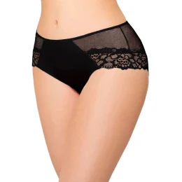 Dámské kalhotky 033 Ewana - černá barva - vyrobené z hladkého mikrovlákna a krajky - zadní část ze siťoviny