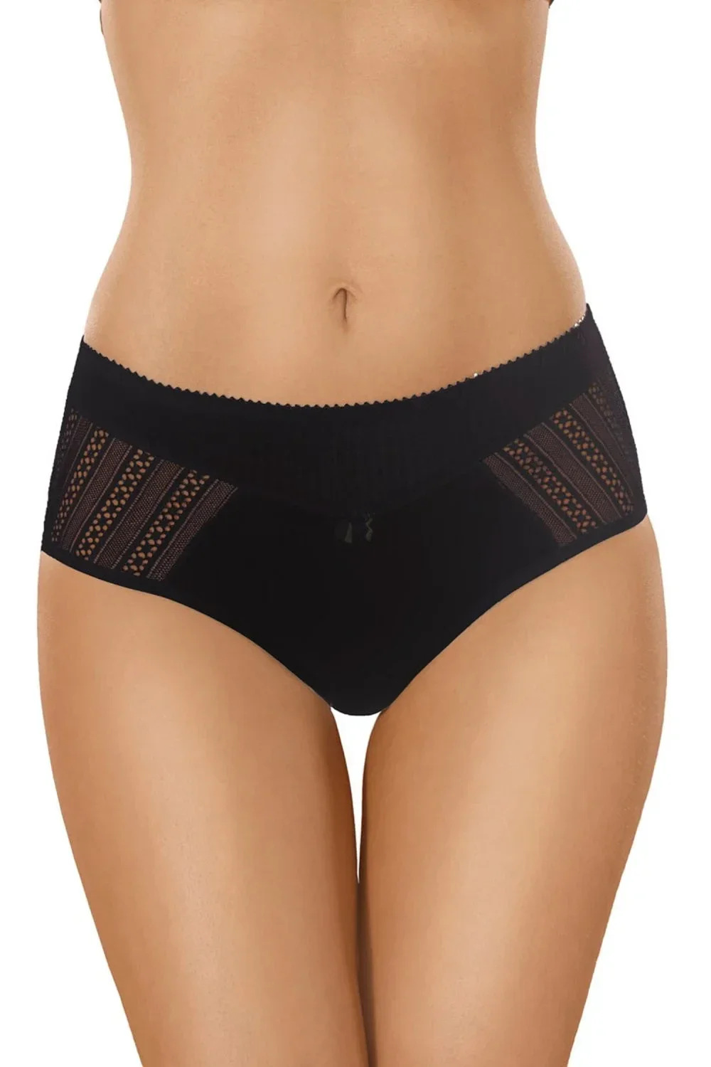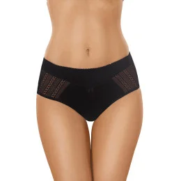 Dámské kalhotky 062 Gabidar - černá barva - kalhotky mají klasický střih a lehce zvýšený pas - na bocích mají jemnou krajku se vzorem - elegantní design - na přední straně roztomilá mašlička