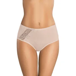 Dámské kalhotky 068 beige Gabidar - béžová barva - klasický střih, lehce zvýšený pas - na bocích mají detail z jemného tylu a výšivky ve stejné barvě - elegantní design