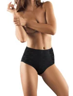 Dámské kalhotky 070 Babell - černá barva - vyšší a plnější střih - přední část zdobená krajkou - obepínající látka tvaruje břicho - boky jsou ažurové - zadní část z bavlny