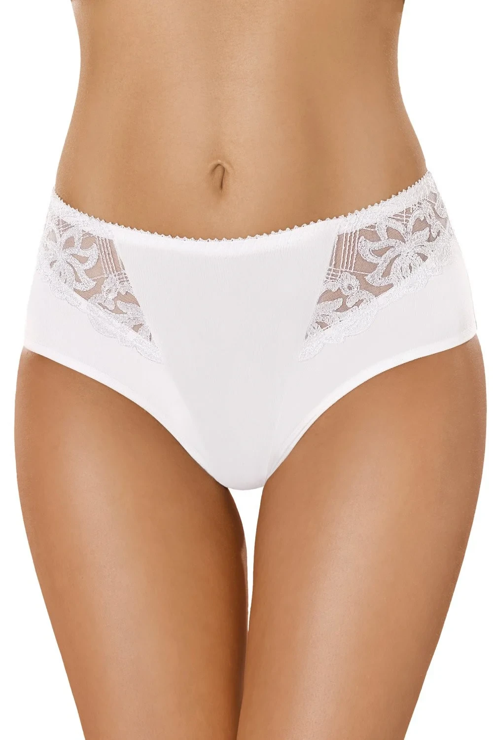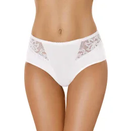 Dámské kalhotky 070 Gabidar - bílá barva - kalhotky mají klasický střih a lehce zvýšený pas - na přední straně mají jemný tyl s květinovým vzorem - elegantní design