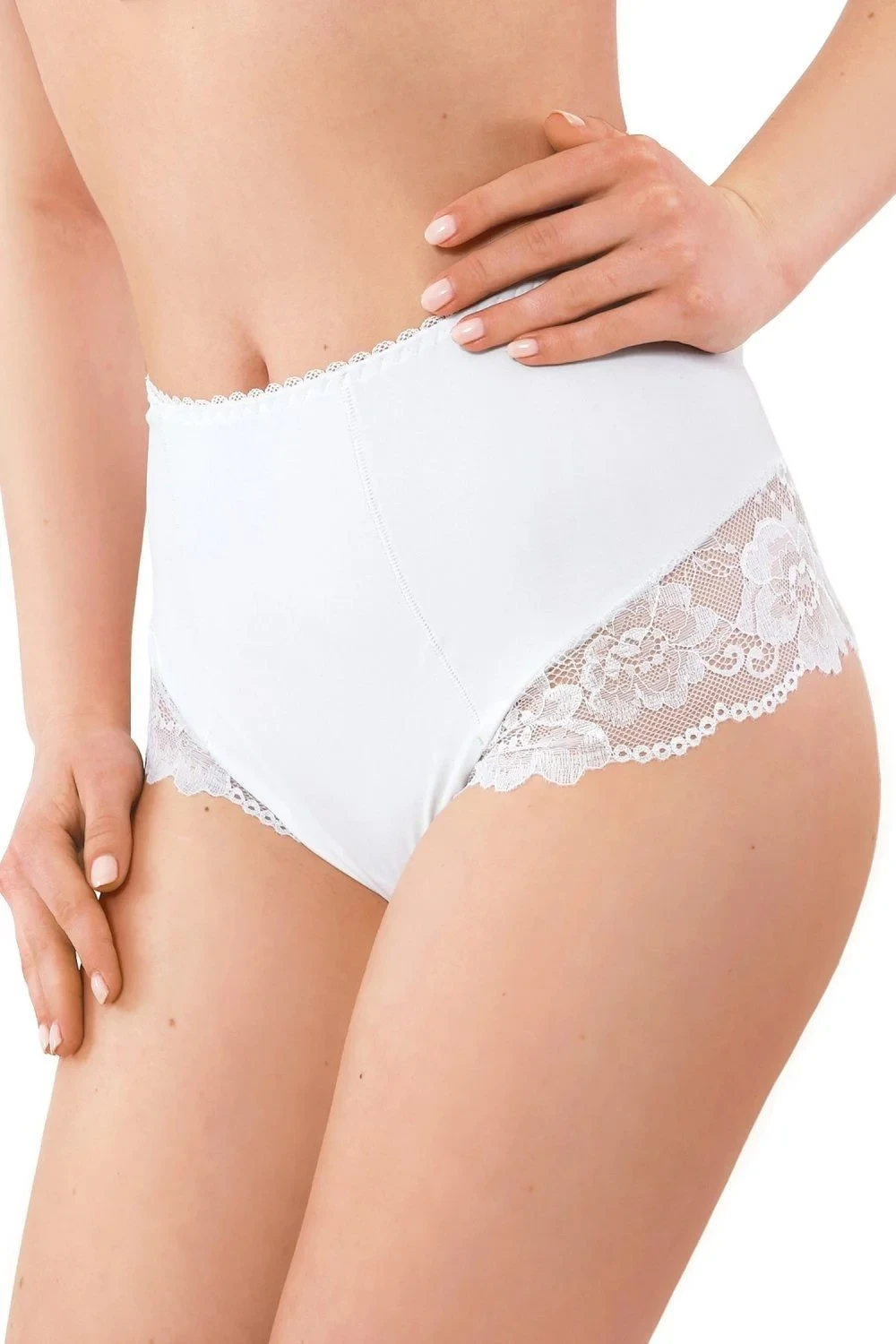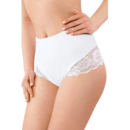 Dámské kalhotky 099 Ewana - bílá barva - z jemného mikrovlákna - krajka s květinovým motivem - vysoký a plnější střih