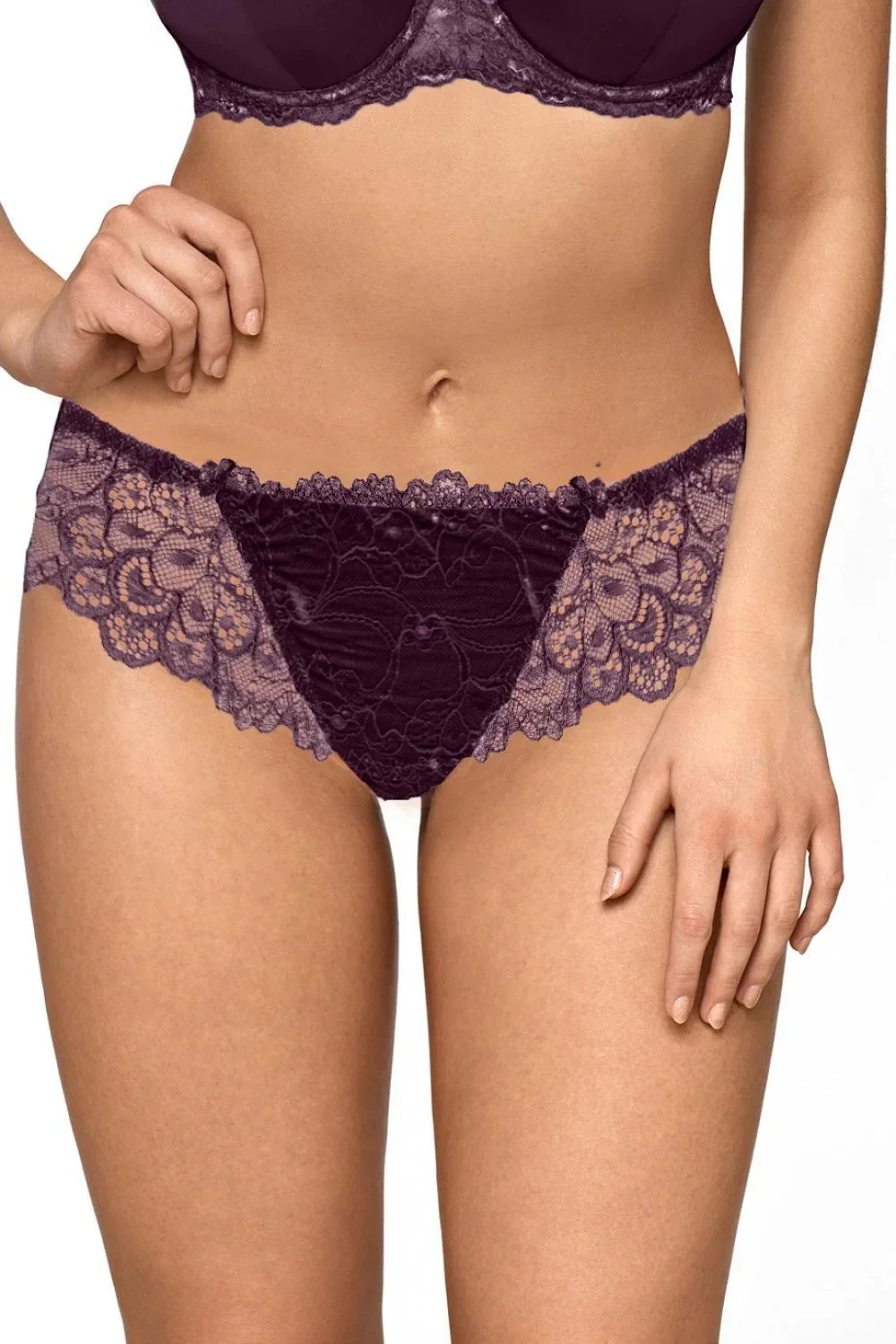 Dámské kalhotky 1030 Novato plum AVA - švestková barva - z příjemného mikrovlákna - přední část z jemné krajkové síťoviny - zadní část z transparentní síťoviny