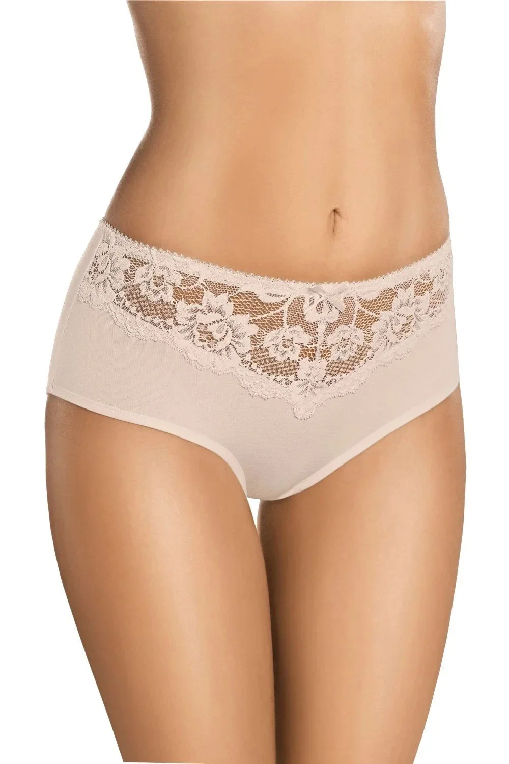 Dámské kalhotky 124 beige GABIDAR - béžová barva - klasický střih, lehce zvýšený pas - přední strana je zdobena jemnou krajkou - elegantní design - na horním lemu roztomilá mašlička