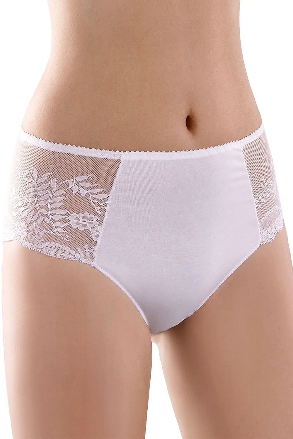 Bavlněné dámské kalhotky 124 Modo klasického střihu - s příměsí elastanu - na bočních částech efektní všivky s květinovým motivem.