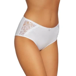 Dámské kalhotky 139 Gabidar - bílá barva - kalhotky mají klasický střih a zvýšený pas - na bocích mají jemnou krajku s květinovým vzorem - jednoduchý design - na horním lemu roztomilá mašlička
