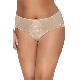 Dámské kalhotky 1824/1 Venus beige AVA - béžová barva - klasický střih - vyrobené z krajky s květinovým motivem - ozdobené vsadkami z jemné tylové síťoviny