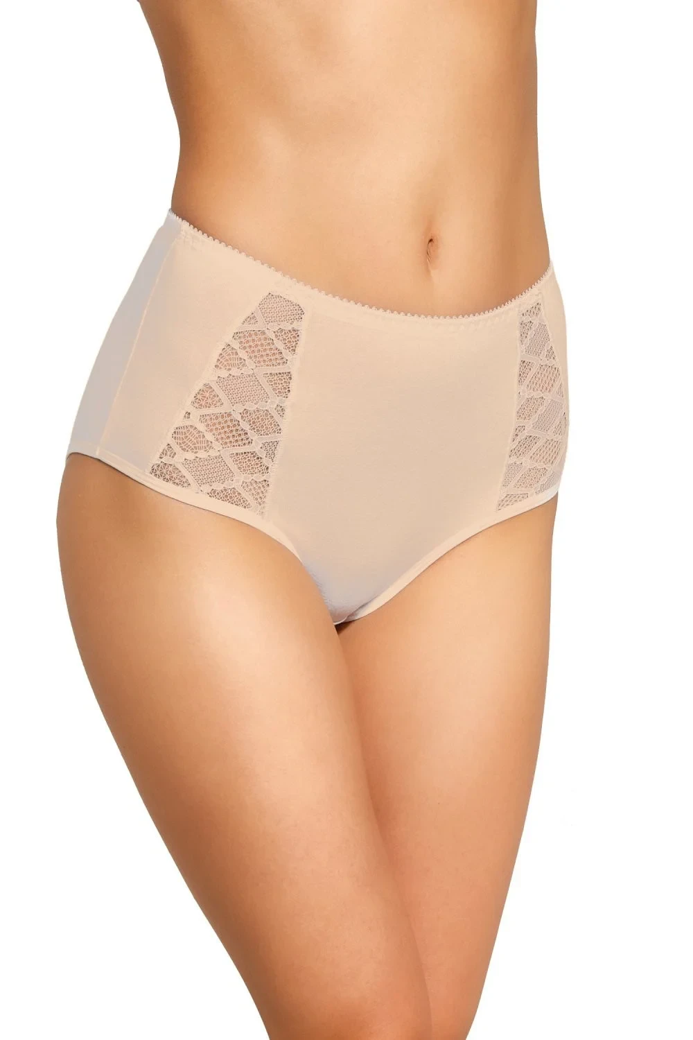 Dámské kalhotky 183 Gabidar - béžová barva - kalhotky mají vyšší střih - na bocích mají jemnou krajku se vzorem - elegantní design
