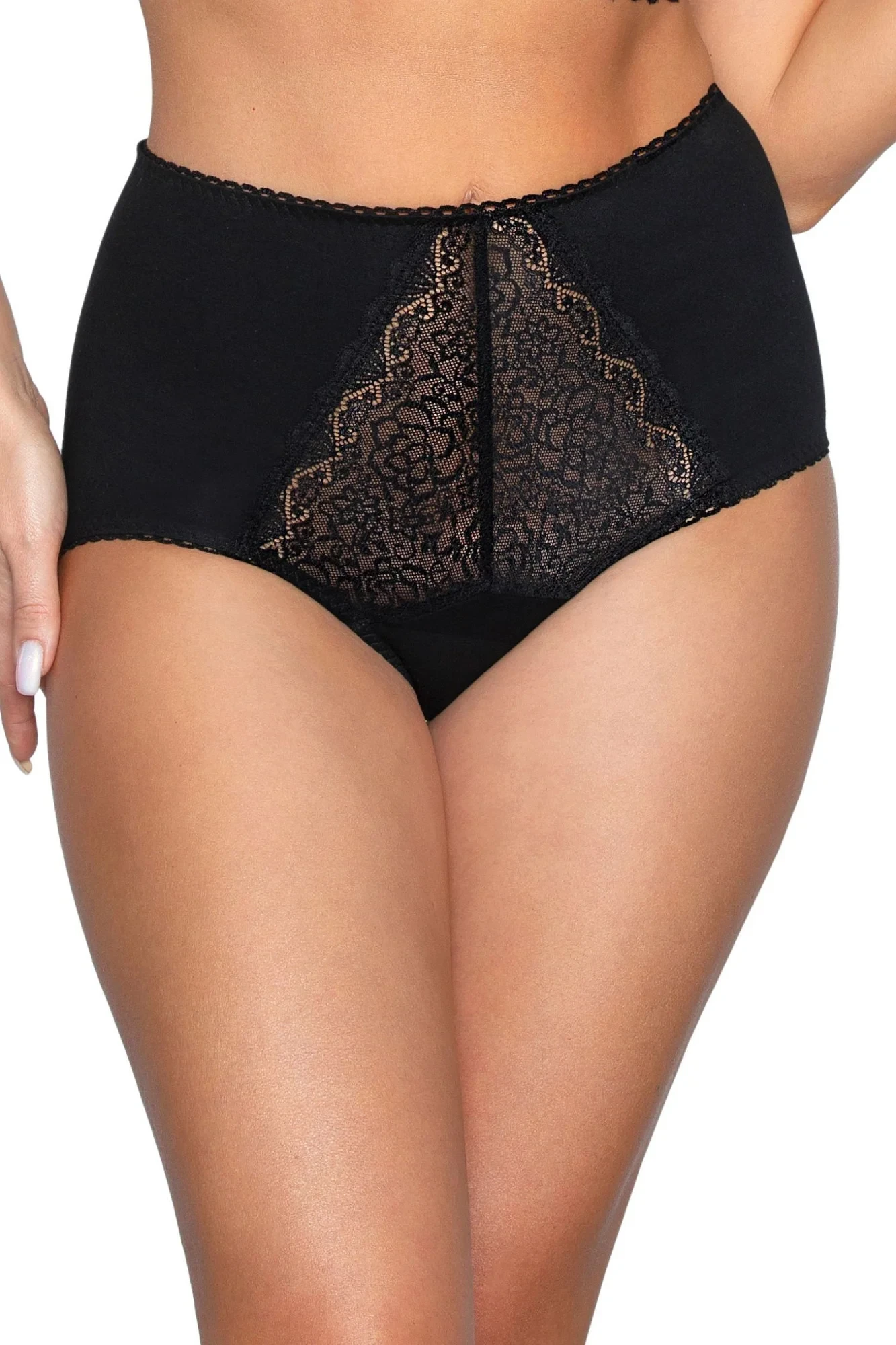 Dámské kalhotky 185 black BABELL - černá barva - z vysoce jakostní bavlny - vyšší pas - boky plné - zdobené ažurovou krajkou na přední části