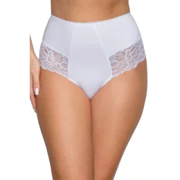 Dámské kalhotky 187 white BABELL - bílá barva - z vysoce jakostní bavlny - vyšší pas - boky plné - zadní část hladká - zdobené ažurovou krajkou na přední části