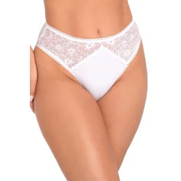 Dámské kalhotky 191 white BABELL - bílá barva - z velmi kvalitní a jemné bavlny - vyšší pas - zdobená efektní krajkou s květinovým motivem