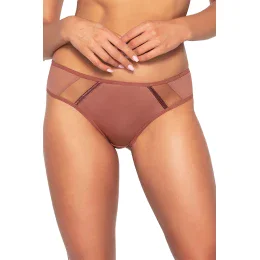 Dámské kalhotky 1923 Protea brown AVA - hnědá barva - z hladkého mikrovlákna - boční části se síťoviny - přední část zdobená lesklými pásky - zadní část z hladké látky a dvojité síťoviny