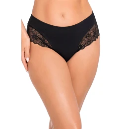 Dámské kalhotky 194 black BABELL - černá barva - z velmi kvalitní a jemné bavlny - vyšší pas - zdobená efektní krajkou s květinovým motivem