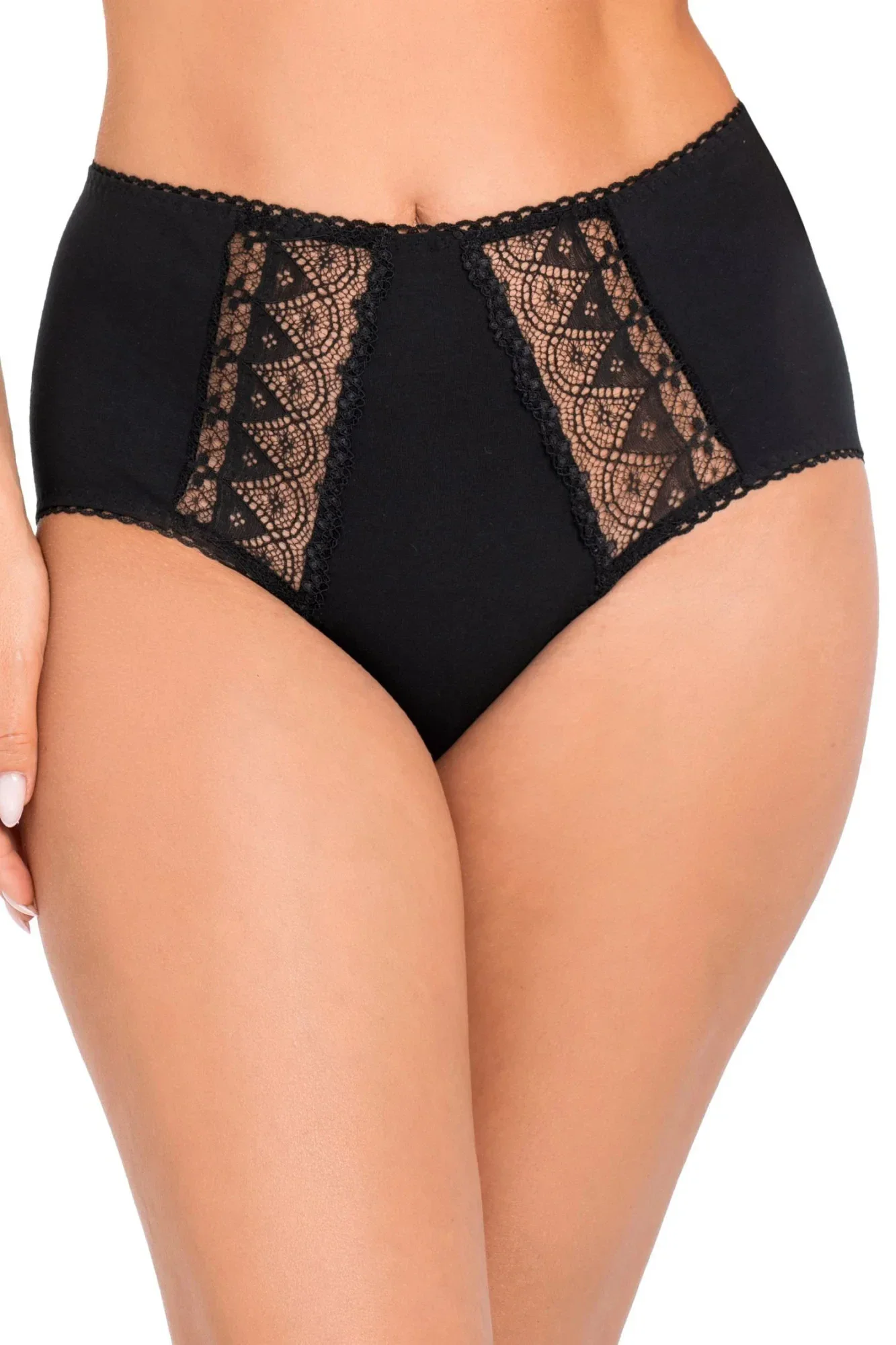Dámské kalhotky 199 black BABELL - černá barva - z vysoce jakostní bavlny - vyšší pas - zdobené krajkou v přední části
