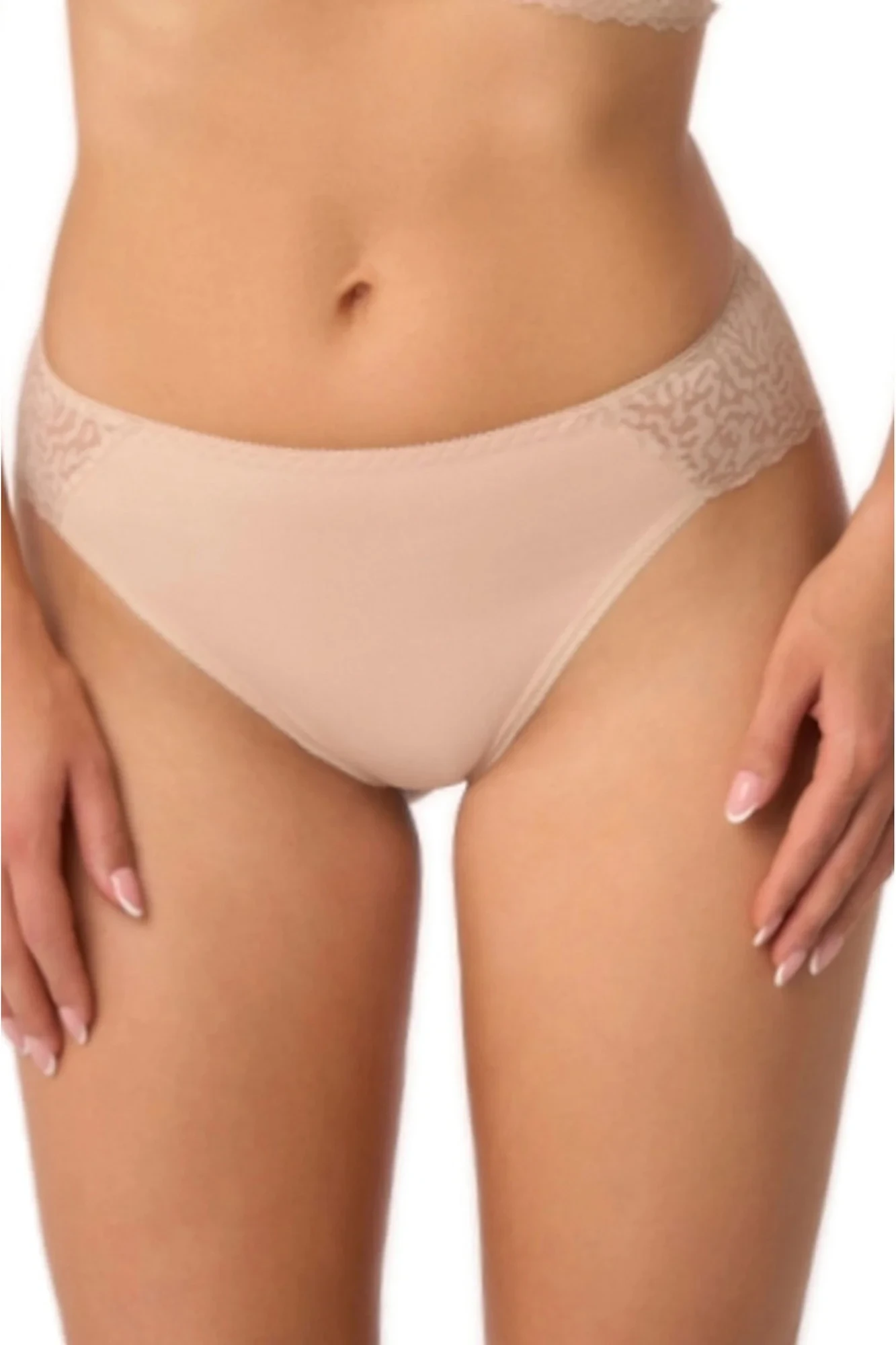 Dámské kalhotky 201 beige BABELL - béžová barva - z vysoce jakostní bavlny - přední část hladká - boky a zadní část z jemné krajky