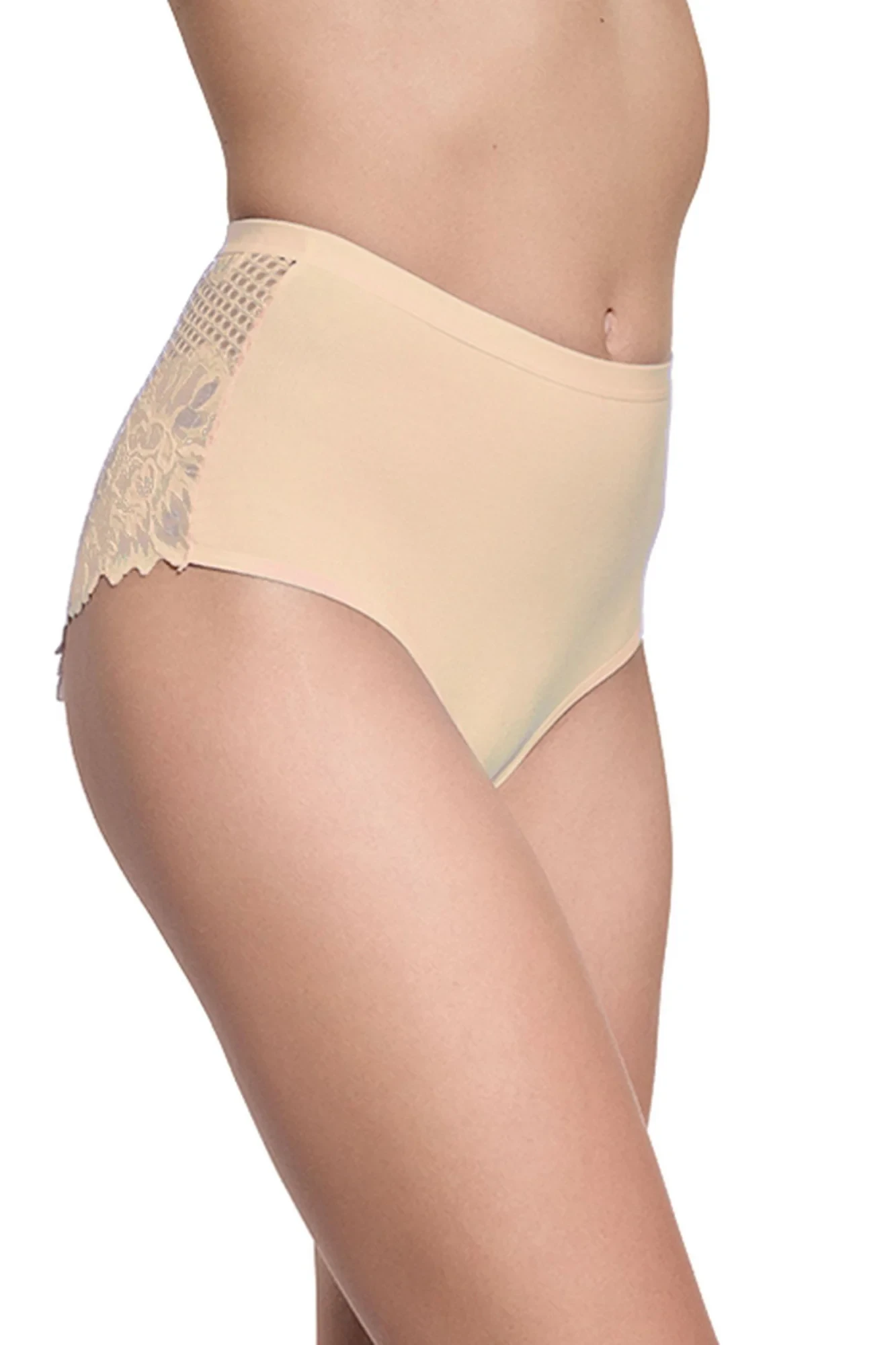 Dámské kalhotky 201 beige GABIDAR - béžová barva - z vysoce jakostní bavlny - vyšší pas - přední část hladká - zadní část z ažurové krajky