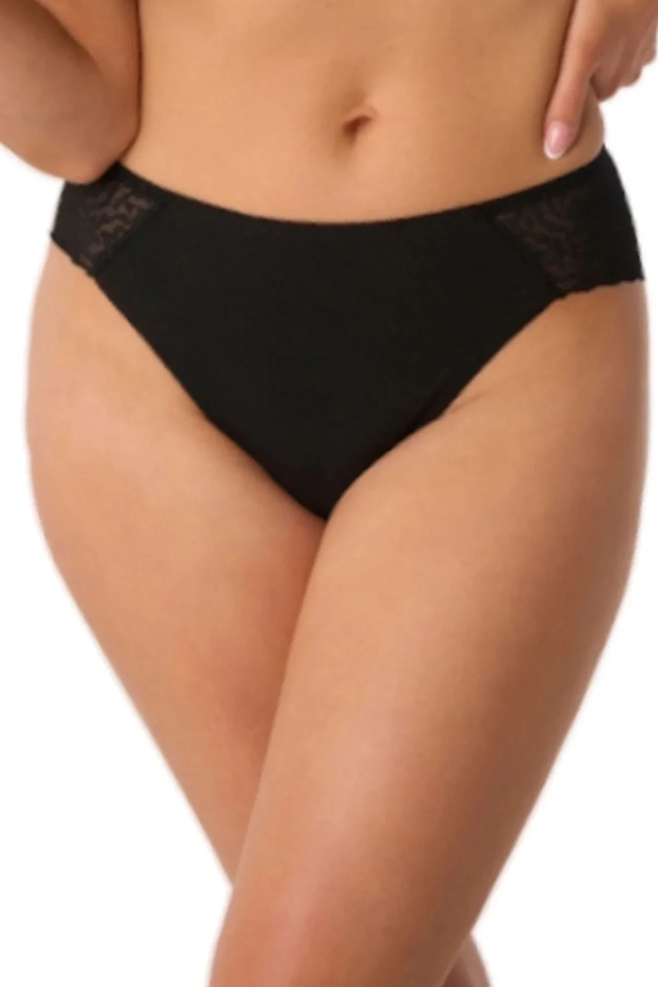 Dámské kalhotky 201 black BABELL - černá barva - z vysoce jakostní bavlny - přední část hladká - boky a zadní část z jemné krajky