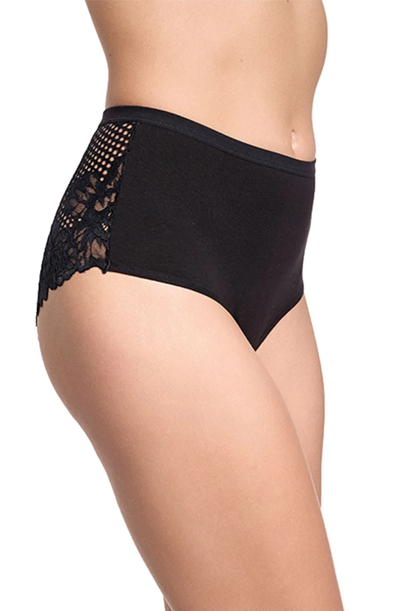 Dámské kalhotky 201 black GABIDAR - černá barva - z vysoce jakostní bavlny - vyšší pas - přední část hladká - zadní část z ažurové krajky