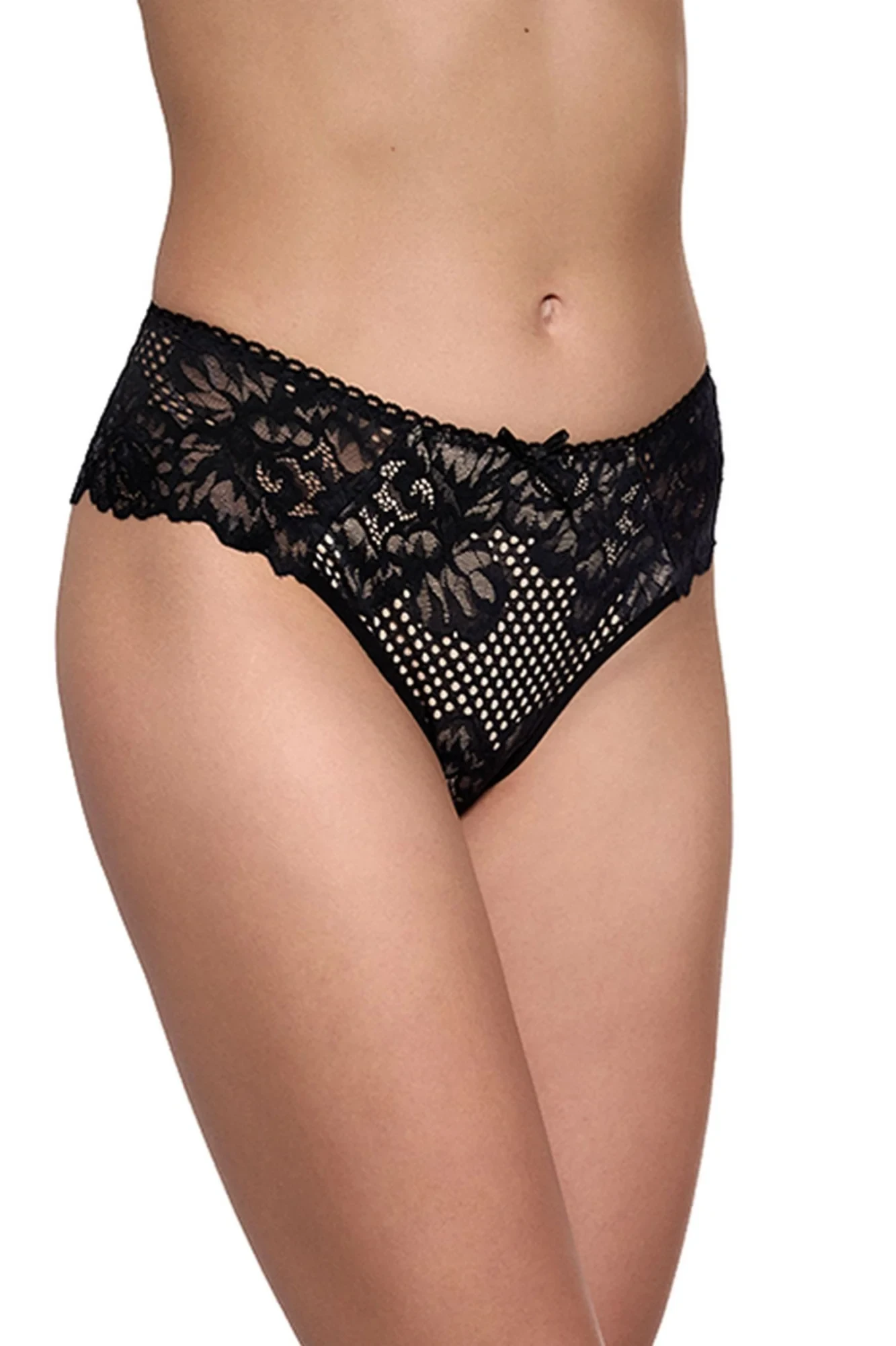 Dámské kalhotky 202 black/beige GABIDAR - černá barva - z vysoce jakostní bavlny - klasický střih - zdobené krajkou s květinovým motivem - přední část pošitá béžovou látkou - v pase saténová mašlička