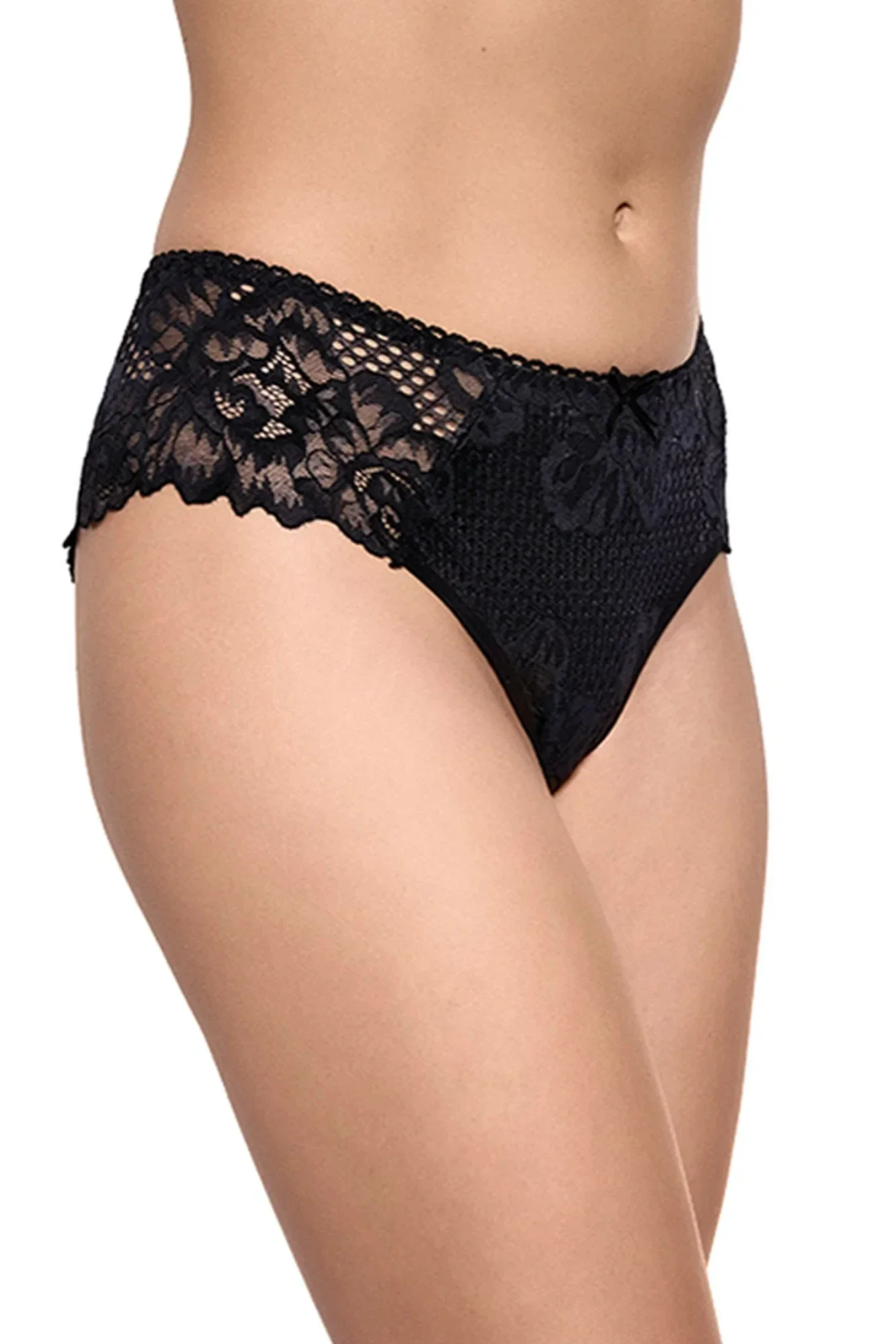 Dámské kalhotky 202 black GABIDAR - černá barva - z vysoce jakostní bavlny - klasický střih - zdobené krajkou s květinovým motivem - v pase saténová mašlička