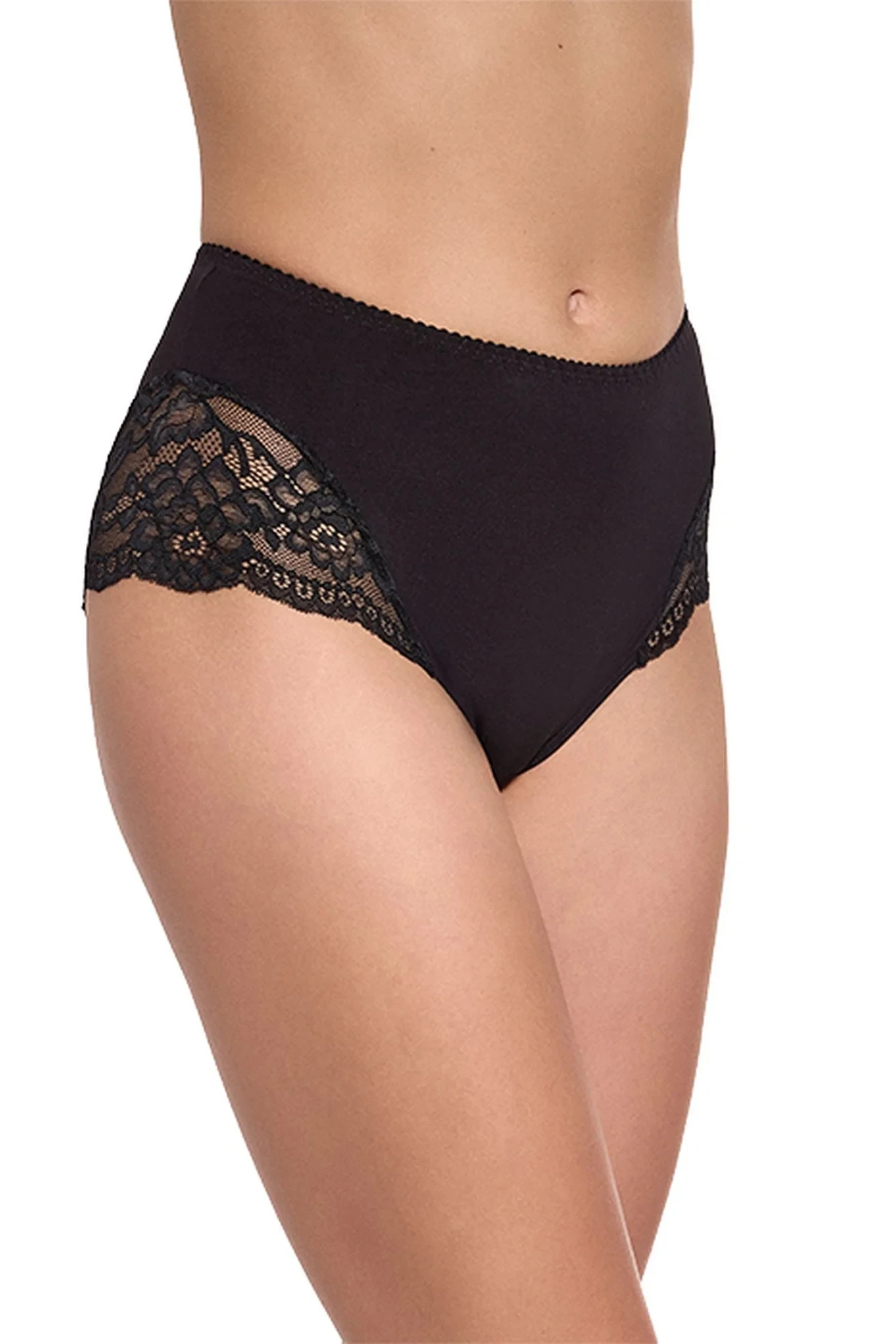 Dámské kalhotky 207 black GABIDAR - černá barva - z vysoce jakostní bavlny - boční části zdobené krajkou - vyšší pas