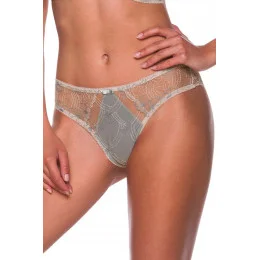 Přední díl kalhotek je vyrobený ze šedého mikrovlákna, na které je našitá krajka. Boky modelu jsou krajkové. Zadní díl kalhotek tvoří v horní části mikrovlákno a spodní část lemuje krajka.