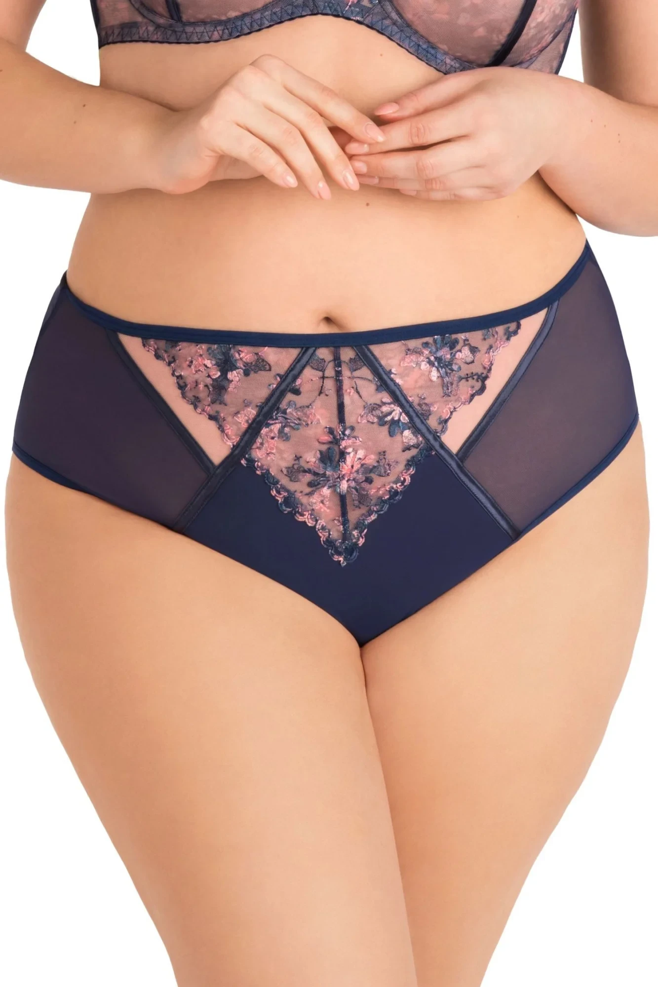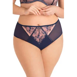 Dámské kalhotky 821 Edna GORSENIA - tmavě modrá barva - kombinace elastického tylu a mikrovlákna - vyšší pas - plné boční části - zadní část z tylové dvojité síťoviny