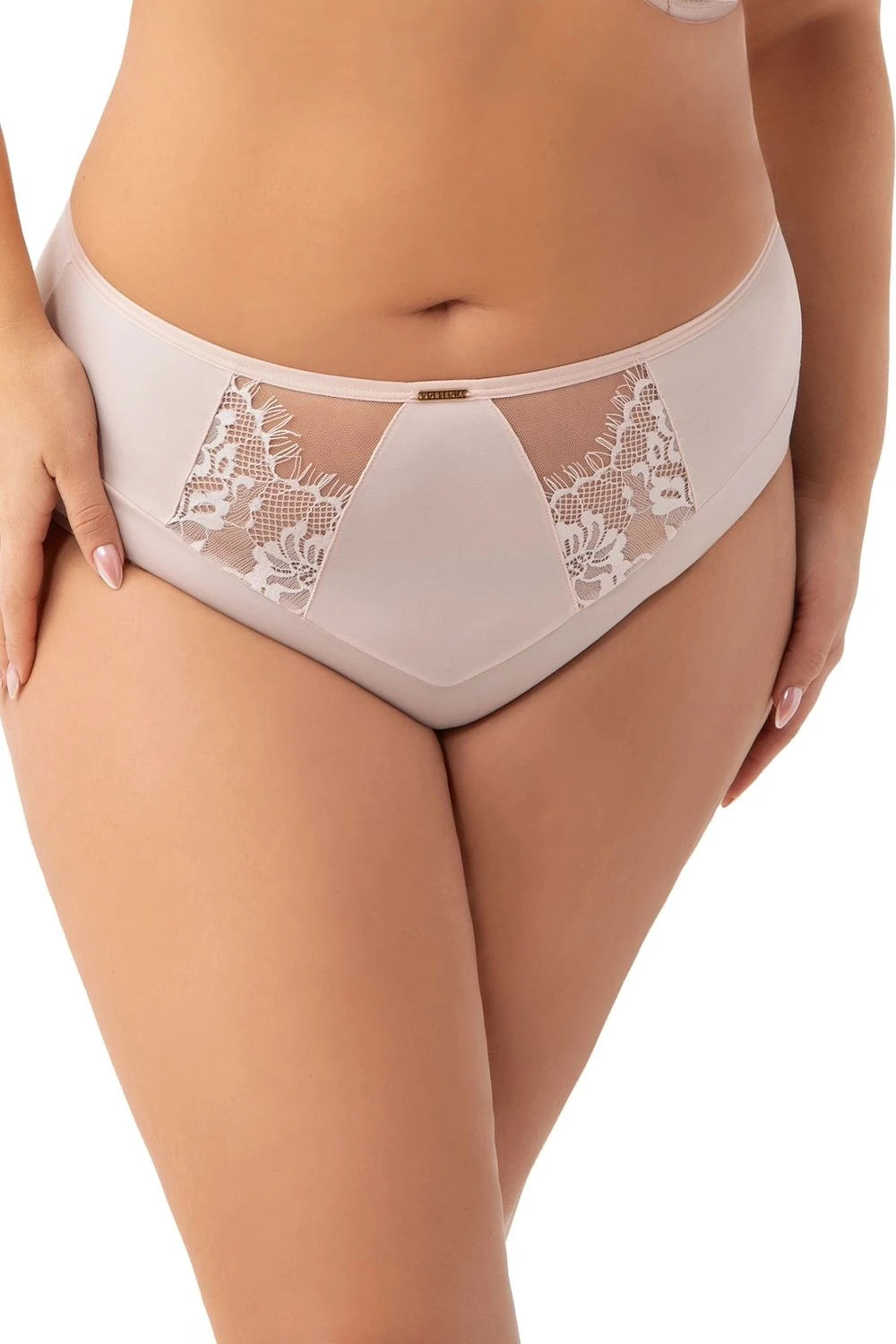 Dámské kalhotky 938 Evia beige GORSENIA - béžová barva - z hladkého mikrovlákna s krajkou - vysoký pas - bavlněný rozkrok