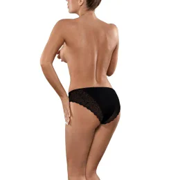 Klasická krása - pohodlné kalhotky s diagonální krajkovou vsadkou podél hýždí. Zcela hladké v přední části, typ Basic Look. Tento model vypadá bezvadně - je ženský, jemný, smyslný a zároveň dokonalý pod jakékoli oblečení. Složení: 80 % polyamid 20 % elastan.