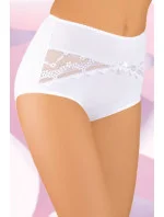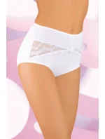 Vysoké dámské kalhotky ušité z bavlny a přídavku lycry. Na přední straně mašlička a krajkové všivky.