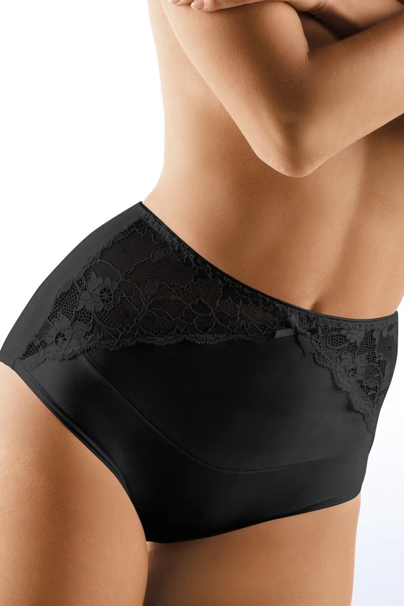 Dámské kalhotky ušité z kvalitní bavlny a elastanu. Jsou vysoké, zpevněné v bocích. Vpředu jsou kPunčochové kalhotyové všivky s květovaným motivem.