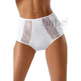 <p>Figi damskie o pełnym kroju z wyższym stanem. Wykonane z delikatnej bawełny i efektownej koronki. Tył gładki, jednolity.</p> <p>Skład: 92% bawełna, 8% elastan.</p>