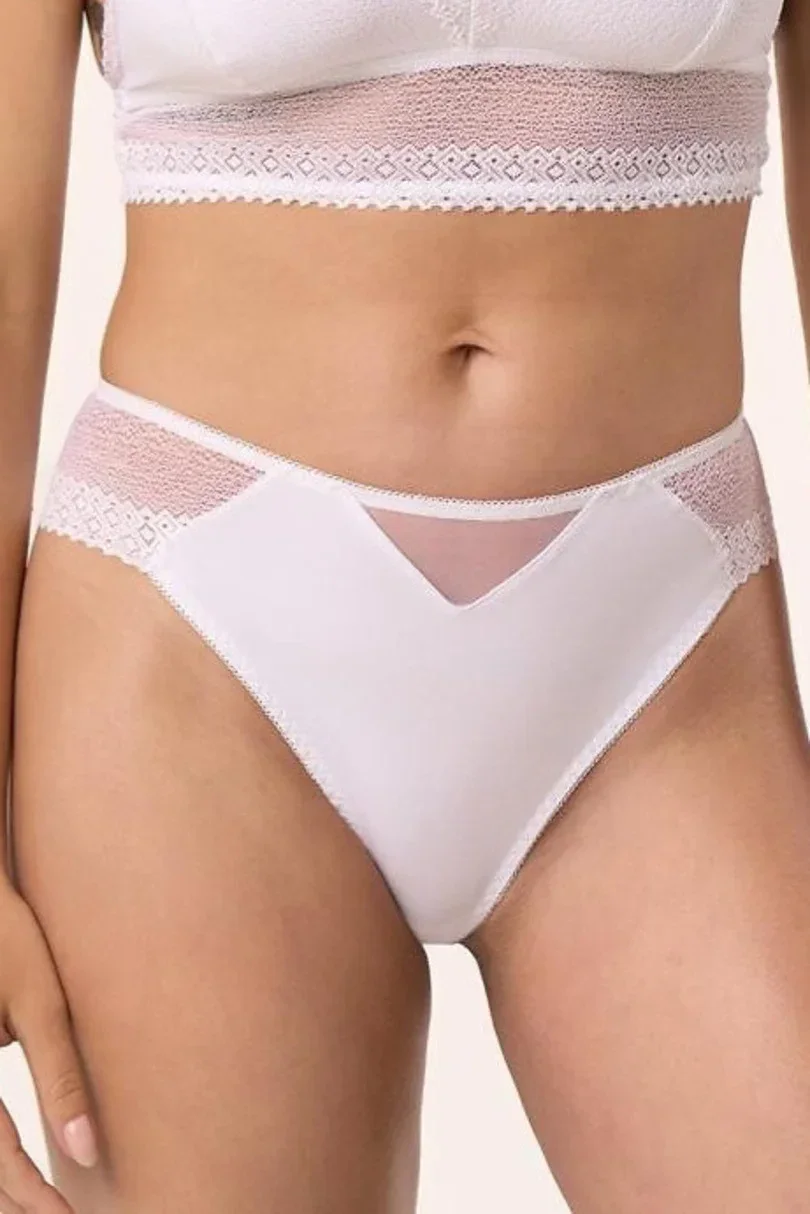 Poczuj się kobieco, wygodnie i zmysłowo w figach brazylijskich BBL211! Ten wyjątkowy model łączy w sobie komfort bawełnianej tkaniny z subtelnym urokiem transparentnych wykończeń z siateczki i koronki. Przód fig został wykonany z delikatnej bawełny połączonej z siateczką tiulową, co zapewnia miękkość i przewiewność w codziennym użytkowaniu. Zmysłowy tył w całości uszyty z transparentnej siateczki z drobnymi oczkami, zakończony finezyjną koronką, subtelnie odsłania pośladki, podkreślając naturalne kształty. Idealne na co dzień i na specjalne okazje – dla kobiet, które cenią sobie połączenie estetyki z wygodą.